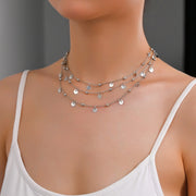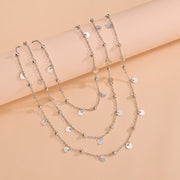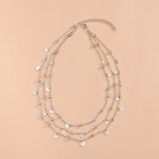 Chain Multi Layer Bead Necklace 3 Strand Disc Pendant Necklaces