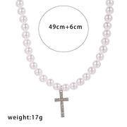 Choker Cross Pendant Pearl Beaded Necklace