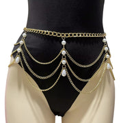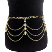Chunky Curb Chain Belt Pearl Party Club Belly Jewelry