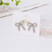 Classic Full Rhinestone Ribbon Bowknot Stud Earrings