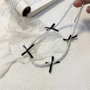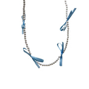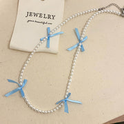 Cute Silk Ribbon Bow Charm Rice Beads Short Choker Necklace
