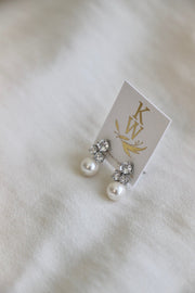 The Dahlia Studs are a beautiful addition to any bridal look or event that you may have coming up. Featuring a cubic zirconia cluster stud with a drop pearl, you can't go wrong with this elegant piece! Also available in  Gold!