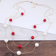 Double Beads Neck Chain Pearl Choker Necklace