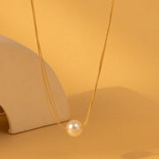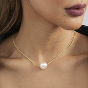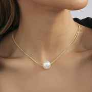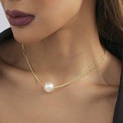 Double Layer Chain Necklace Big Pearl