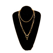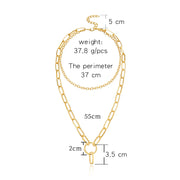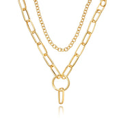 Double Layer Cuban Link Chain Necklace Chunky With Ring Pendant