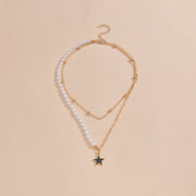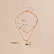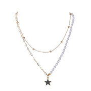 Double Layer Pearl Paperclip Chain Star Pendant Necklace Jewelry