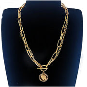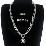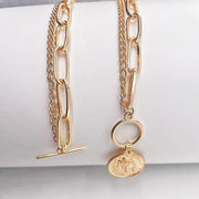 Double Layer Stacked Women Necklace Circular Pendant