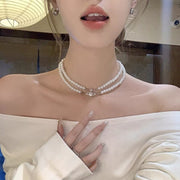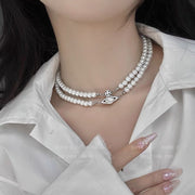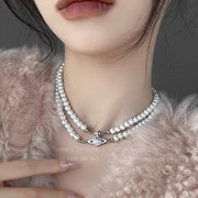 Double Pearl Saturn Magnetic Buckle Necklace