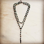 This double lariat necklace is a fantastic piece to add to your jewelry collection. The african turquoise beads create a look that is as classic as it gets. With a copper feather pendant hanging from the bottom of the necklace, you have the perfect touch of boho chic. Choose to dress it up or wear it casually, either way, you are going to have a necklace that will take your outfit to the next level.