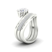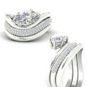 Center Stone Shapes & Cuts: The center stone diamond shapes & cuts include a Oval cut, and Pear cut for the Dual Bands with Wave Solitaire Ring.
