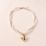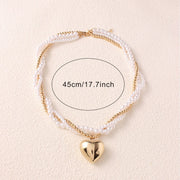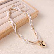 Elegant Vintage Twisted Pearl Beaded Heart Pendant Necklace