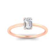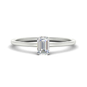The Emerald Cut Thin Classic Solitaire Ring from Fascinating Diamonds features a center stone diamond in a classic four prong setting, elegantly paired with a glossy shank for a refined look that's perfect for everyday.