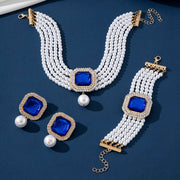 Exaggerated Bride Jewelry Women's Imitation Pearl Necklace Earrings Set
