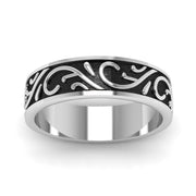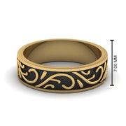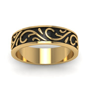 The Exquisite Design Mens Band from Fascinating Diamonds presents a rich black texture with precisely engraved details, accompanied by gleaming polished rims, making it a statement piece of sophistication.