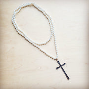 Extra Long Pearl Beaded Necklace w/ Copper Cross 260m