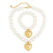Fashion Heart Pendant Beaded Necklace Earrings Bracelet Jewelry Set