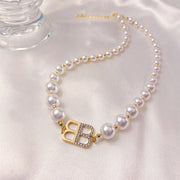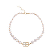 Fashion Imitation Pearl Beads Chain Letter B Pendant Necklace
