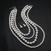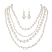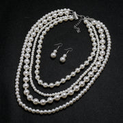 Fashion Multi Layers Long Pearl Necklace Earrings Set for Women
