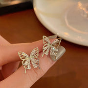 Fashion Rhinestone Hollow Butterfly Stud Earrings
