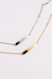 - Curved Bar Pendant Bracelet with engraved cursive "Feminist"