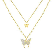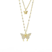 Introducing our Fluttering Elegance: Gold Butterfly Two Layer Necklace: a stunning piece adorned with butterfly pendants encrusted in cubic zirconia. This necklace exudes elegance and charm, perfect for any occasion. Elevate your style effortlessly with its versatile design and captivating sparkle.