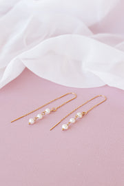 Not your grandmother's pearls! These dainty pearl threaders are everything! Not only are they super lightweight, they are also the highest quality! So you know they will last for years and yearsss to come. These are a great piece to elevate your everyday outfits, or you can easily have them be apart of your going out looks, church fits, or even bridal looks! These earrings are so fun and unique but are also so timeless, they will never go out of style!