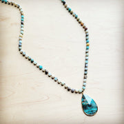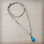 Frosted Amazonite Long Beaded Necklace with Agate Pendant 260o