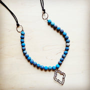 **Frosted Chrysocolla Beaded Necklace w/ Copper Pendant 258h