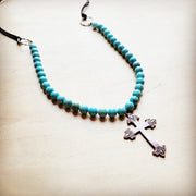 **Frosted Magnesite Beaded Necklace w/ Copper Cross 258i