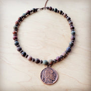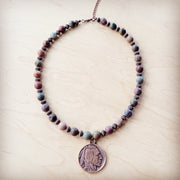 Genuine Picasso Jasper Collar Necklace w/ Indian Head Pendant 261h