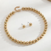 Geometric Round Metallic Beads Choker Necklace Jewelry Set