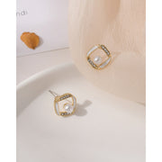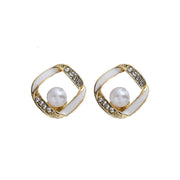 Geometry Hollow Rhinestone Pearl Stud Earrings