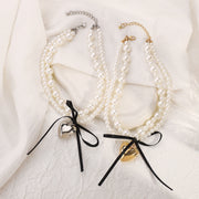Goth Black Ribbon Bow Heart Pendant Necklace for Women
