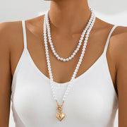 Imitation Pearl Multilayer Choker Necklace for Women Elegant Heart Pendant Necklace