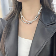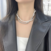 Imitation Pearl Wrapped Necklace Double Layer