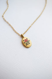 Meet the Irene Necklace! This floral pendant necklace is sooo cute and gives your outfit the perfect finishing touch! Featuring a 18k gold plated stainless steel chain and a gorgeous red floral engraved pendant, this necklace is a classic, everyday kind of piece that gives your outfit a cute pop of color! It is hypoallergenic, tarnish resistant, and waterproof, and is made to last for years and years!