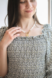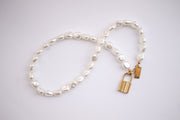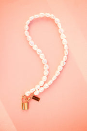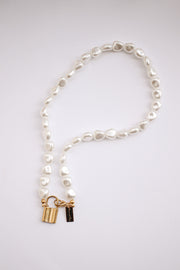 A custom Rose and Clay design! This necklace is intended to be worn with the lock at the front, but you could also flip lock and clasp to the back so you have just a simple classy pearl necklace!! How cute :)