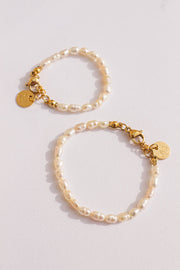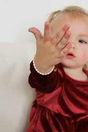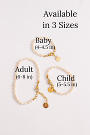 Isn't she GORGEOUS!? Meet the Lani Bracelet. This bracelet is so timeless and feminine in design perfect for the tiny ladies in your life! This bracelet is made with a full strand of real freshwater pearls and an 18k gold plated stainless steel clasp and adjuster chain. It's hypoallergenic and tarnish free, so it's the highest quality and will easily be an heirloom piece to be passed down. Also how perfect would this be for a baby blessing or christening!? Its durably made, and oh so sweet, you absolutely need this for your daughters and granddaughters.