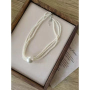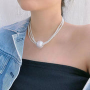 Large Round Bead Pendant Multi layer Pearl Beaded Necklace