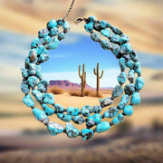 Indulge in this stunning turquoise necklace. Handmade in Texas, this necklace is a unique addition to any boho or western fashion ensemble. The genuine magnesite turquoise stones add a touch of natural beauty. Elevate your style with this one-of-a-kind piece!