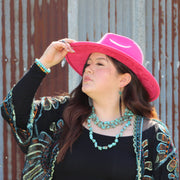 Indulge in this stunning turquoise necklace. Handmade in Texas, this necklace is a unique addition to any boho or western fashion ensemble. The genuine magnesite turquoise stones add a touch of natural beauty. Elevate your style with this one-of-a-kind piece!