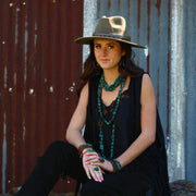 Expertly crafted with three strands of genuine turquoise and wood, this boho western necklace adds the perfect touch of natural beauty to any outfit. Each unique stone makes a one-of-a-kind statement. Dare to stand out with the Large Triple Strand Natural Turquoise & Wood Collar Necklace.