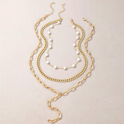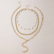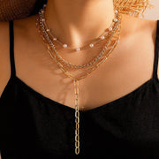 Layer Long Chain Necklace Pearl Charm Jewelry