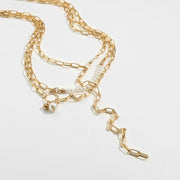 Layer Long Chain Necklace Pearl Charm Jewelry for Women