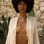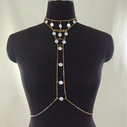 Layer Pearl Belly Chain Geometric Round Tassel Belly Chain