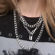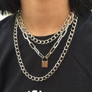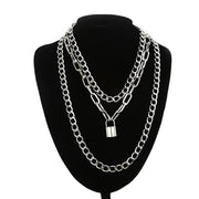 Layered Chain Necklace Neck Chains Lock Pendant Jewelry