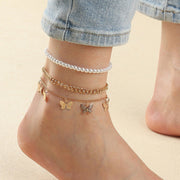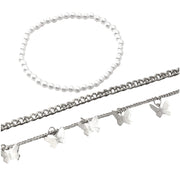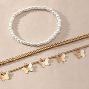 Layered Foot Chain Cuban Link Anklet Pearl Butterfly Ankle Bracelet