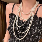 Layers Pearl Beaded Necklace Long Jewelry Women