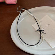 Leather Bowknot Collarbone Chain Choker Link Chain Necklace