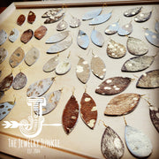 - These earrings will come to you in assorted hides, based on what we are currentlycutting, and sizes (see example photos below)